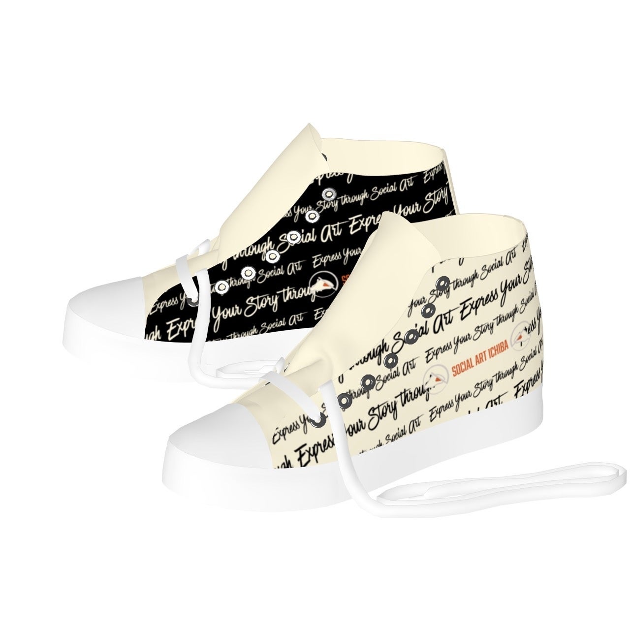 ソーシャルアート市場の、障害者アーティストが制作した企業ロゴや文字等の作品を、当団体の理念に賛同してくれているグラフィックデザイナーである吉光美月氏が、クライアント(企業や個人)のオーダーをデザインに反映していく、世界で唯一無二のアイテムが得られるサービスです。シンボリックアイテムとして、当団体のイメージをほどこしたスニーカーをサンプルとして掲載しています。