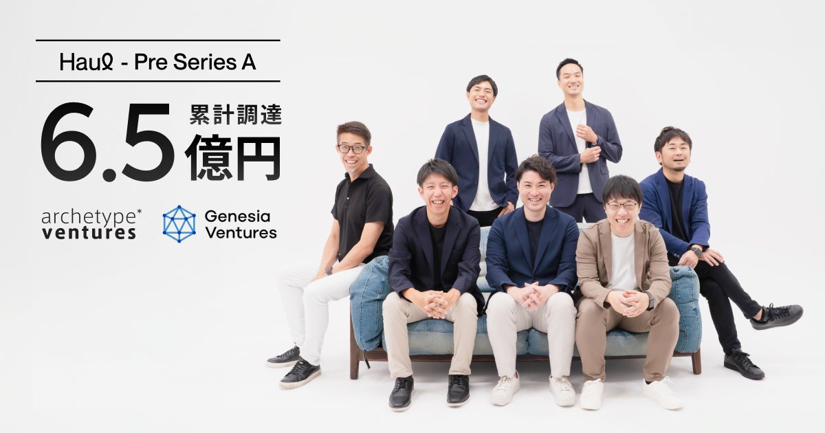 株式会社Haul(本社:東京都目黒区、代表取締役:平田拓嗣、以下Haul)は、Archetype Venturesおよびジェネシア・ベンチャーズの既存株主を引受先とした第三者割当増資により、総額5億円の資金調達を実施しました。今回の調達により累計資金調達額は6.5億円となります。