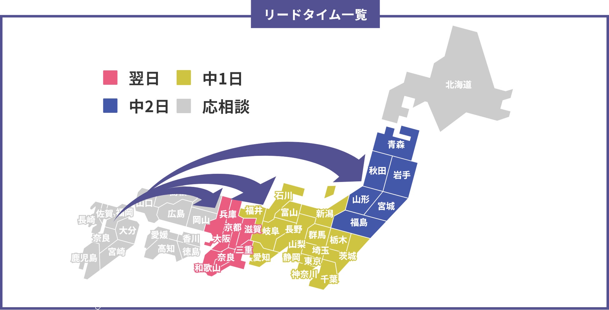 九州発→関西・東海・関東・東北エリアへの長距離輸送を最短2日前から手配可能