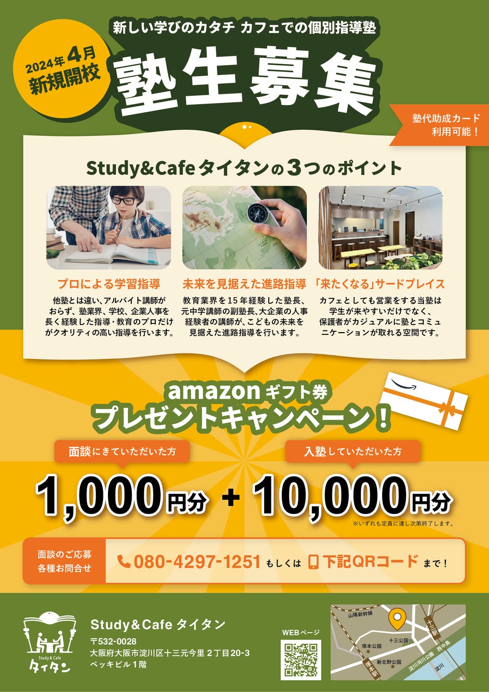 大阪・十三に新たな個別指導塾が開校!新規塾生募集としてamazonギフト券がもらえるキャンペーンを実施中!