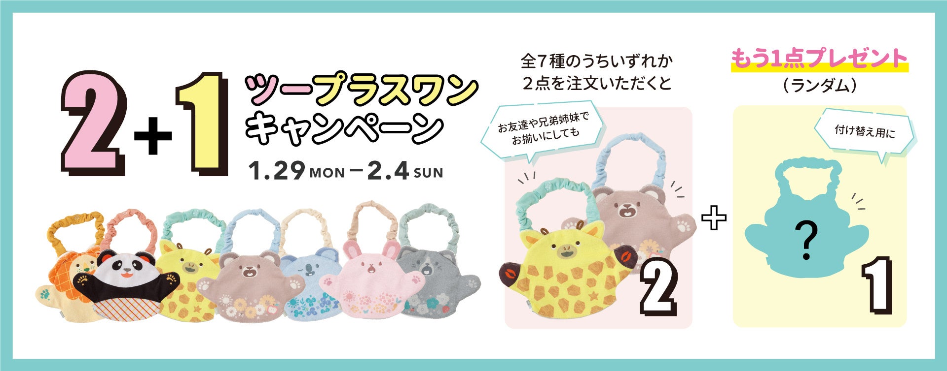 キャンペーン内容:期間中、1回のお買い物で対象商品いずれか2点をご購入につき+1点をプレゼント