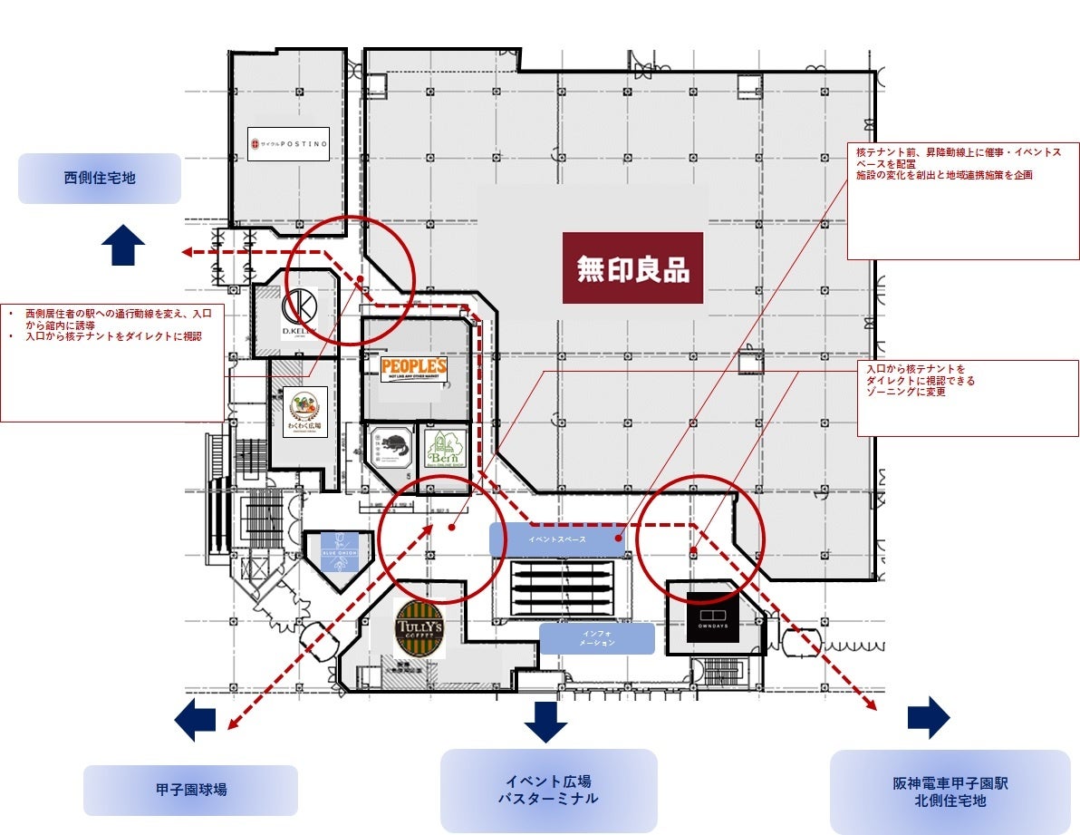 ●核テナントの顔が各入口からダイレクトに見えるゾーニングに変更