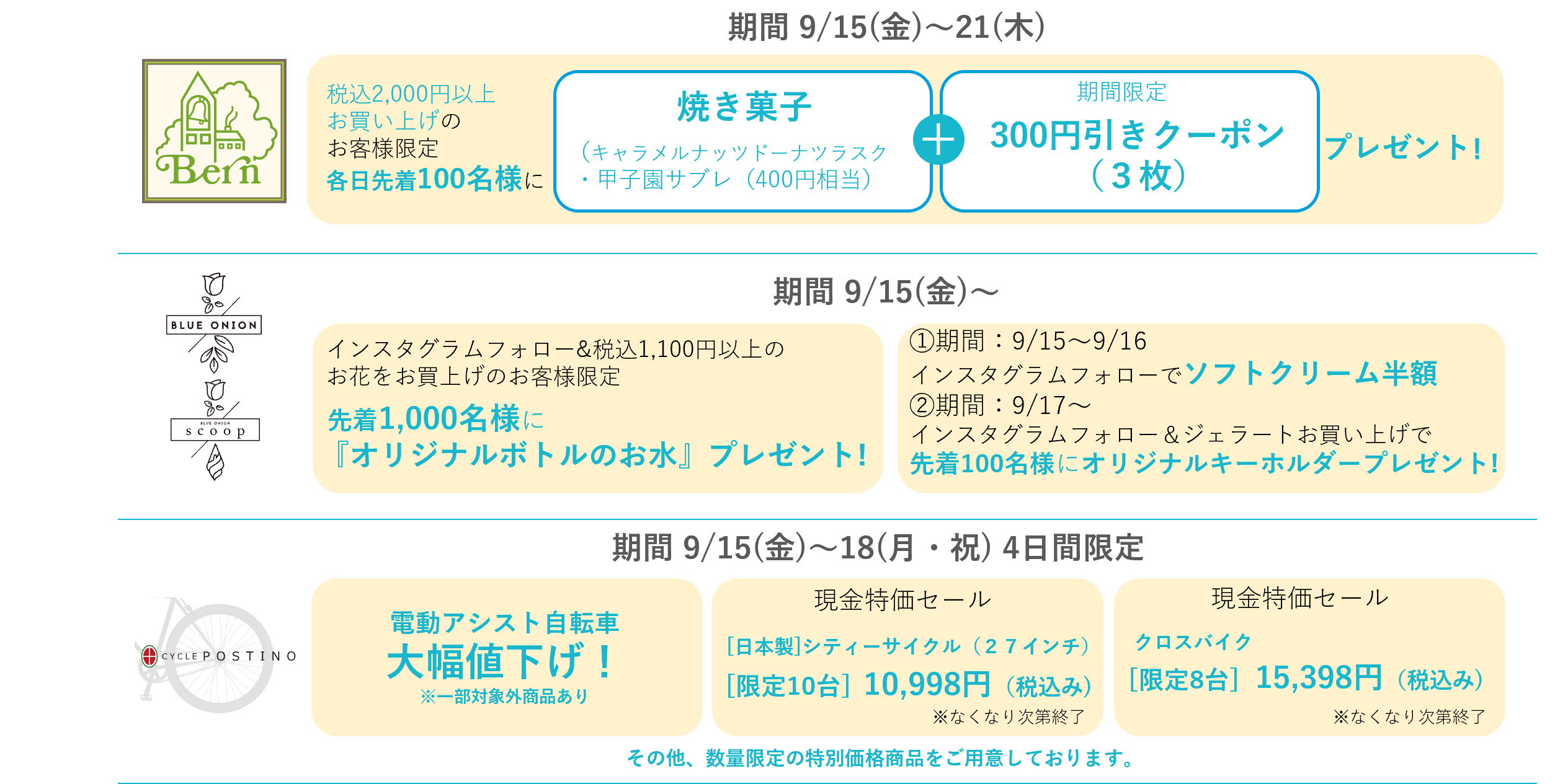 その他、各店舗でもお得な企画が目白押し!