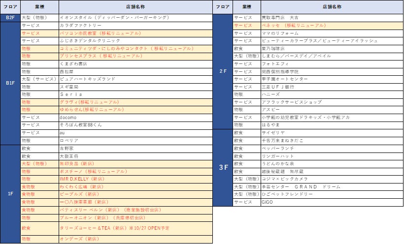 本施設は、駅前の利便性に優れ、敷地南側は「国道43号」を挟み「阪神タイガース」の本拠地「阪神甲子園球場」が隣接する、地下2階から3階まで(営業面積 約29, 000㎡)の店舗で構成される商業施設となります。