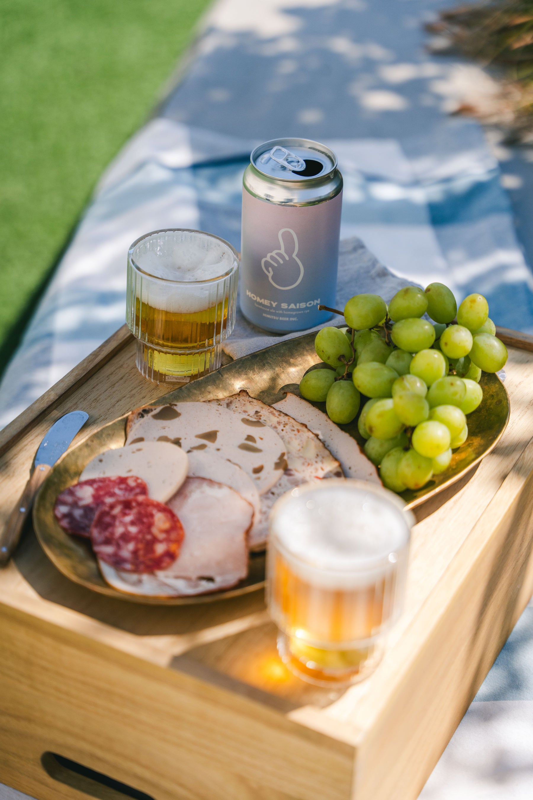 株式会社ガルテンが企画し、オリジナルで制作したピクニックマットや、奈良県吉野町の木材商店と共同制作しているカッティングボードなど、こだわりのあるオリジナルアイテムを含めた6点セットをレンタル可能。飲食も豊富にご用意しており、手ぶらでピクニックを楽しむことができます。