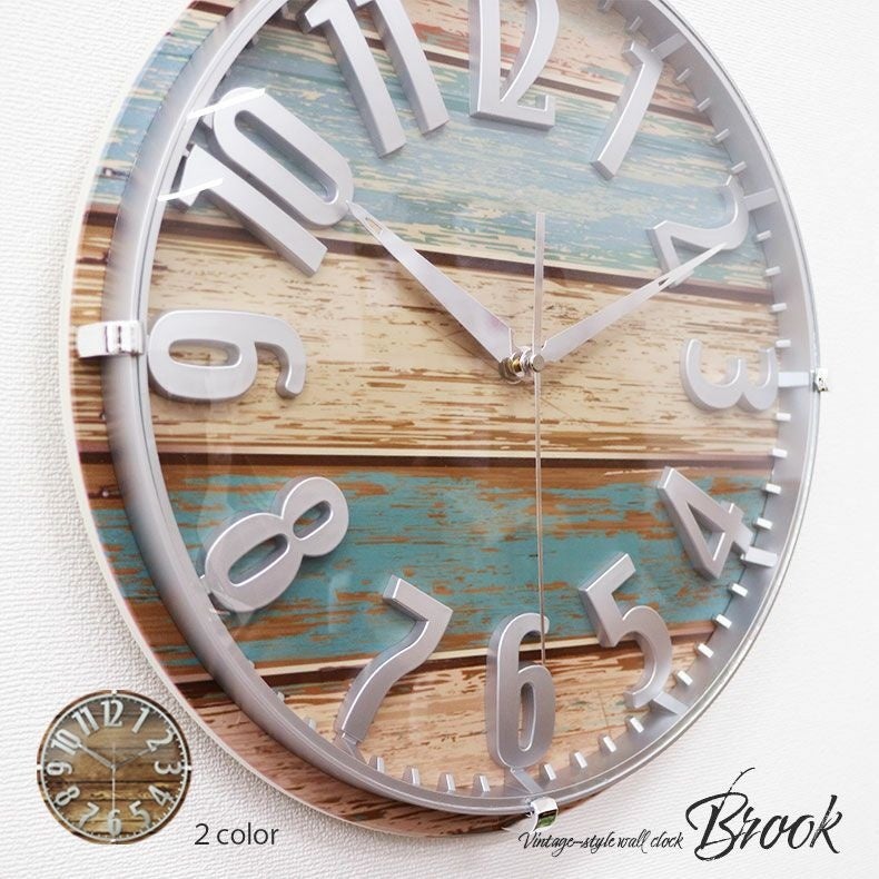 ビンテージテイストのお部屋によく似合う掛け時計「Brook(ブルック)」。使い込まれたような木目調の文字盤が印象的。シャビースタイルやカフェ風など、様々なスタイルと相性抜群です。