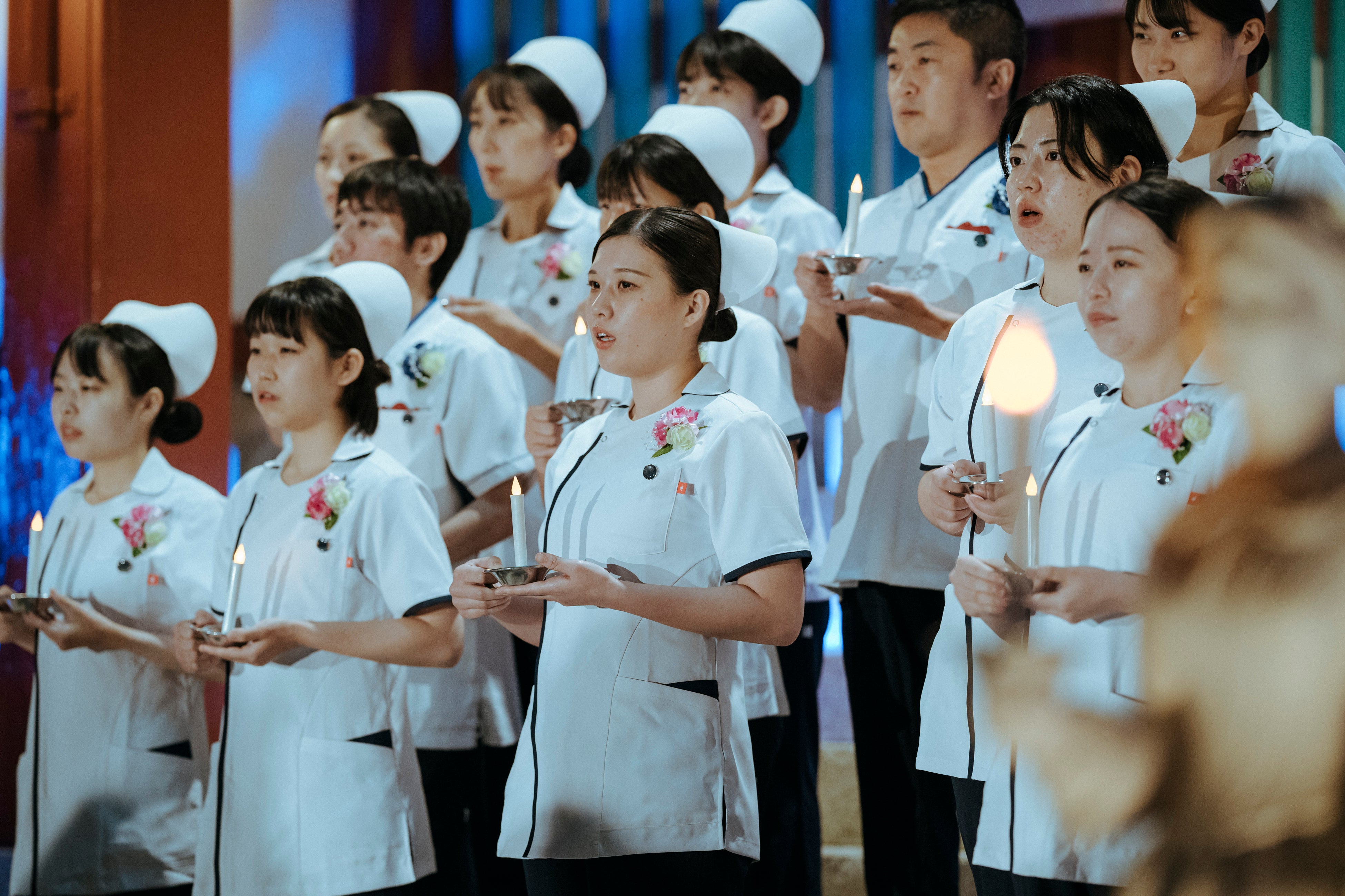 学生たちは、家族や友人、地元の方々など約150名に見守られる中、看護の道に進む決意を表明しました。