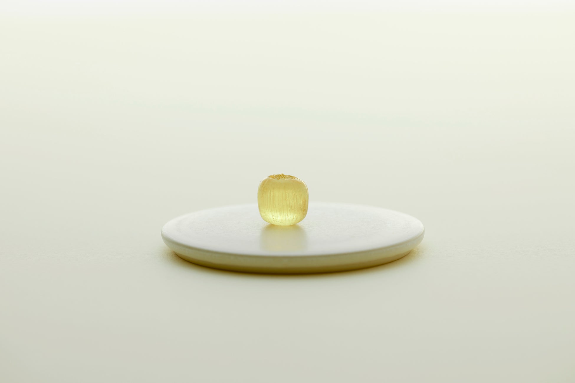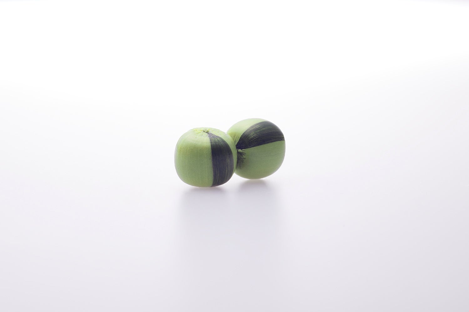 挽き立ての新鮮な抹茶を使用した「薄茶飴」は、滑らかな口当たりで奥ゆかしい風味が広がります。 二色の緑は茶碗の中できめ細かく点てられた泡と、その下に沈む抹茶を表現。 程よい苦みが心地よく、甘いものが苦手な方にもお召し上がりいただける一粒です。 飴が溶け切る最後までお薄茶の美味しさをお楽しみいただけます。