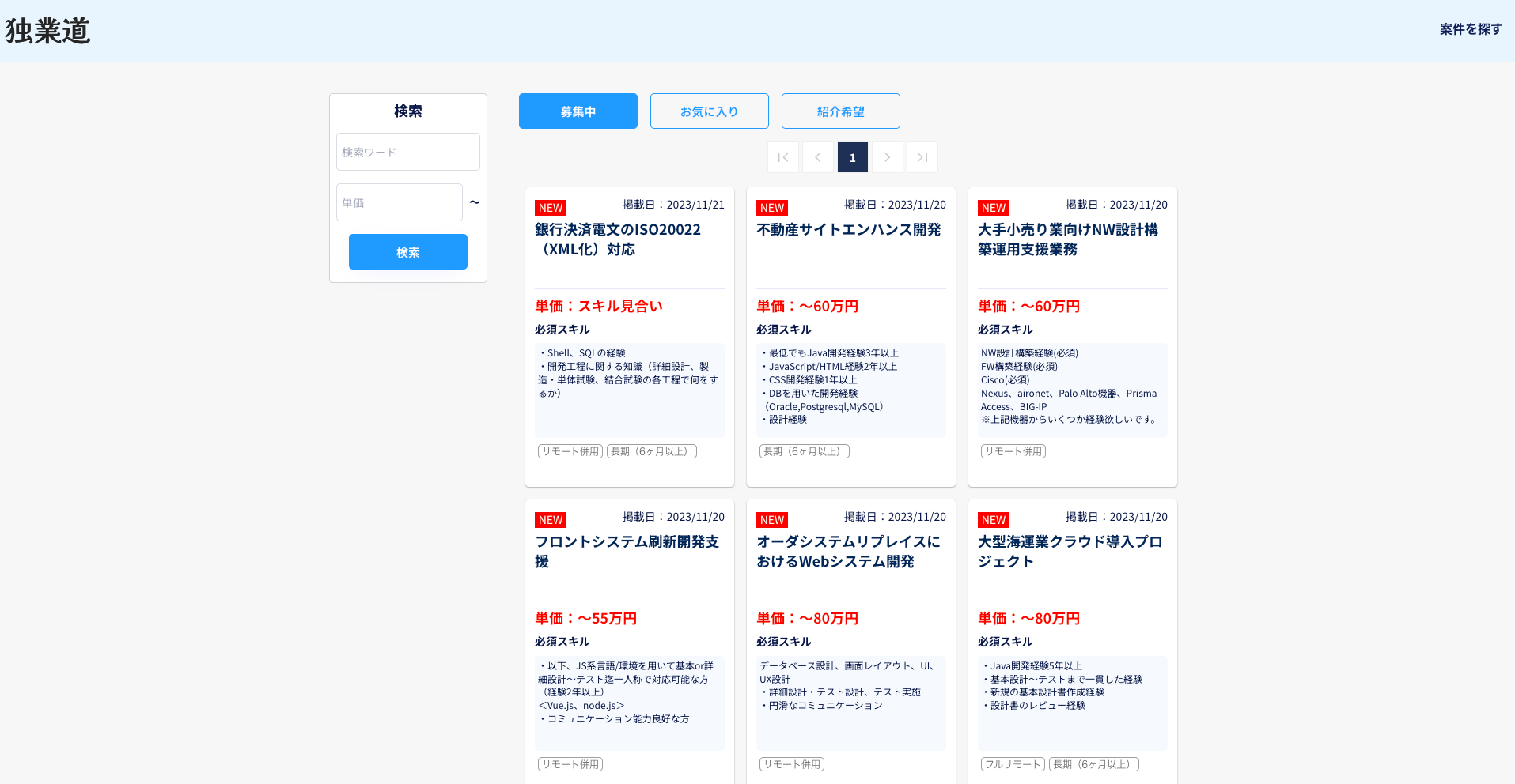 ユーザーフレンドリーなインターフェース: フリーランスエンジニアが求める案件を迅速に見つけられるよう設計されています。