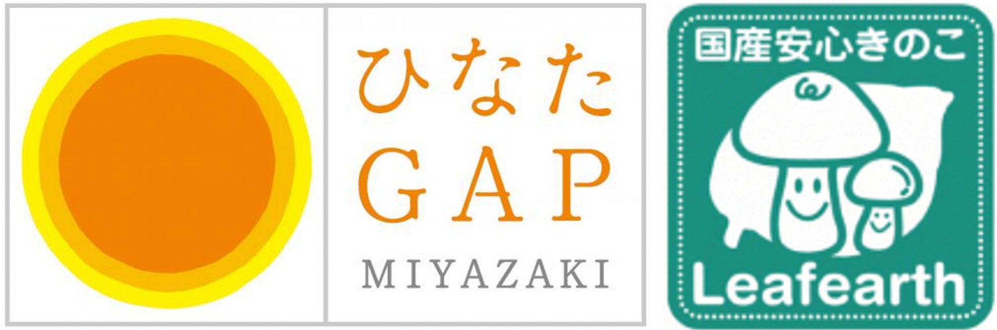 宮崎県版「ひなたGAP」の認証を取得。GAPに基づく徹底した生産管理で、季節に関わらず年中安定した高品質のしいたけを生産・出荷します。また、「国産安心きのこ認証」を保有。きのこ栽培の培地である菌床の原料、及び原木の安全性にこだわり、農薬に頼らずに国内で栽培されたきのことして認証されています。