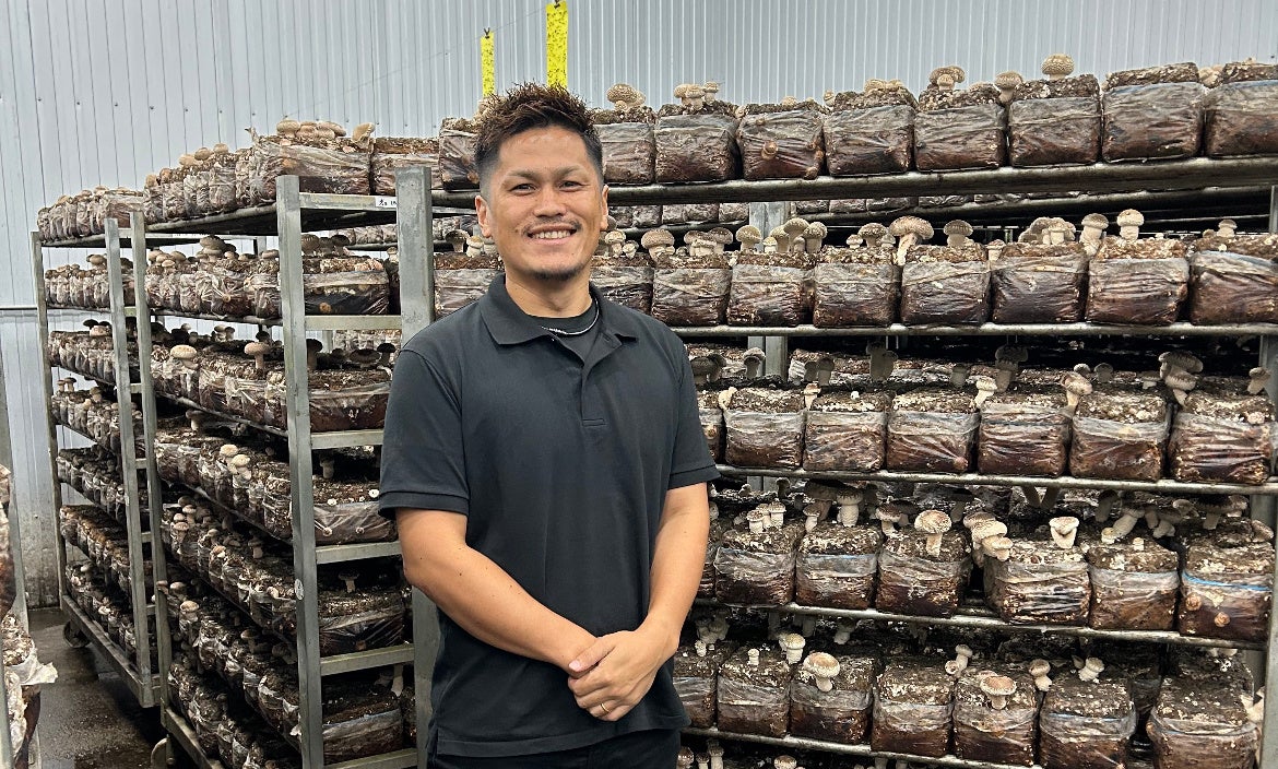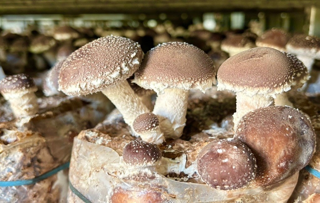 熟練した生産管理技術により、水分を抑えた栽培を実現。しいたけは水分を多く含むと黒くなりがちですが、新鮮なしいたけの色白な見た目を維持しやすく、棚もちのよさが特徴です。