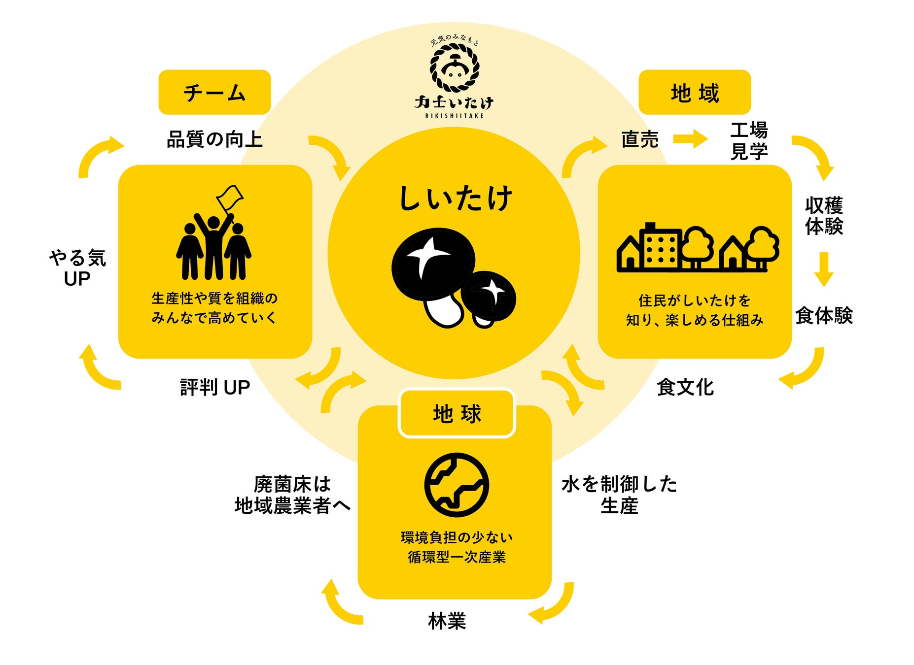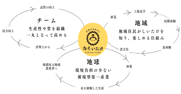今後もチーム一丸となり、高品質のしいたけ生産に努めてまいります。また、地域の方々により親しんでいただけるよう、製造拠点から地域の方々が訪れることができる、ひらかれた交流拠点を目指します。