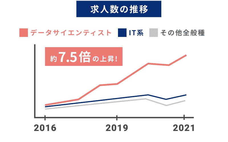 データサイエンティストの求人数が5年で7倍超に「文系・初学者」でも即戦力を実現するオンラインスクールがリリース