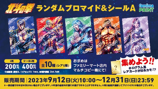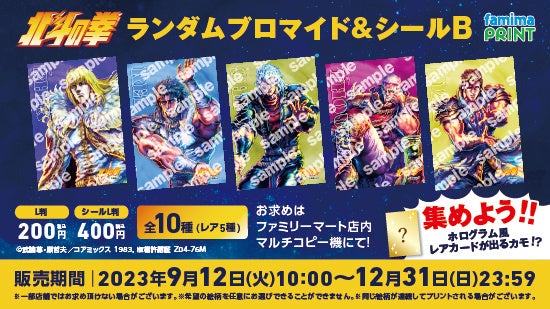 第一弾は、ケンシロウ、ラオウ、トキ、ジャギ、ユリア、シン、レイ、シュウ、サウザー、ジュウザの計10キャラが各2種のデザインで登場。A・Bの各グループからランダムでプリントされる「ランダムブロマイド」