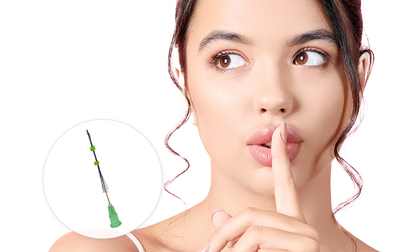 鼻下すぐの皮膚に糸が挿入された極細カニューレを挿入し、皮膚を切開することなく糸を挿入します。メスを使用しないためダウンタイムが少なく、傷跡も針穴の赤みが多少生じる程度で目立ちません。