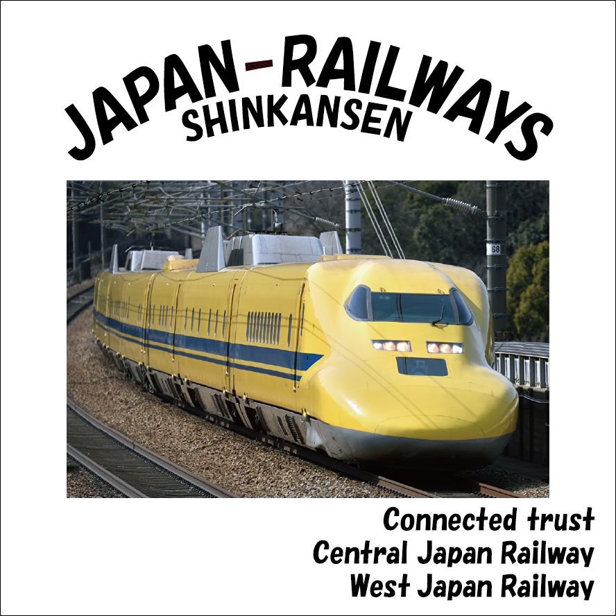 写真下には、英文字メッセージで『つながる信頼』をプリントデザイン。安心・安全な運行かつ短時間で、人と人とをつなげてくれる新幹線は国内外で高い人気があります。