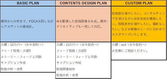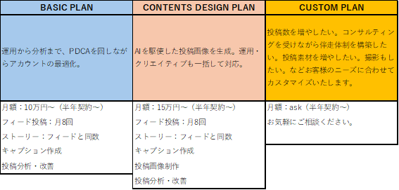 2) アカウントの運用、キャプション制作、分析のベーシックプラン(月10万円~)