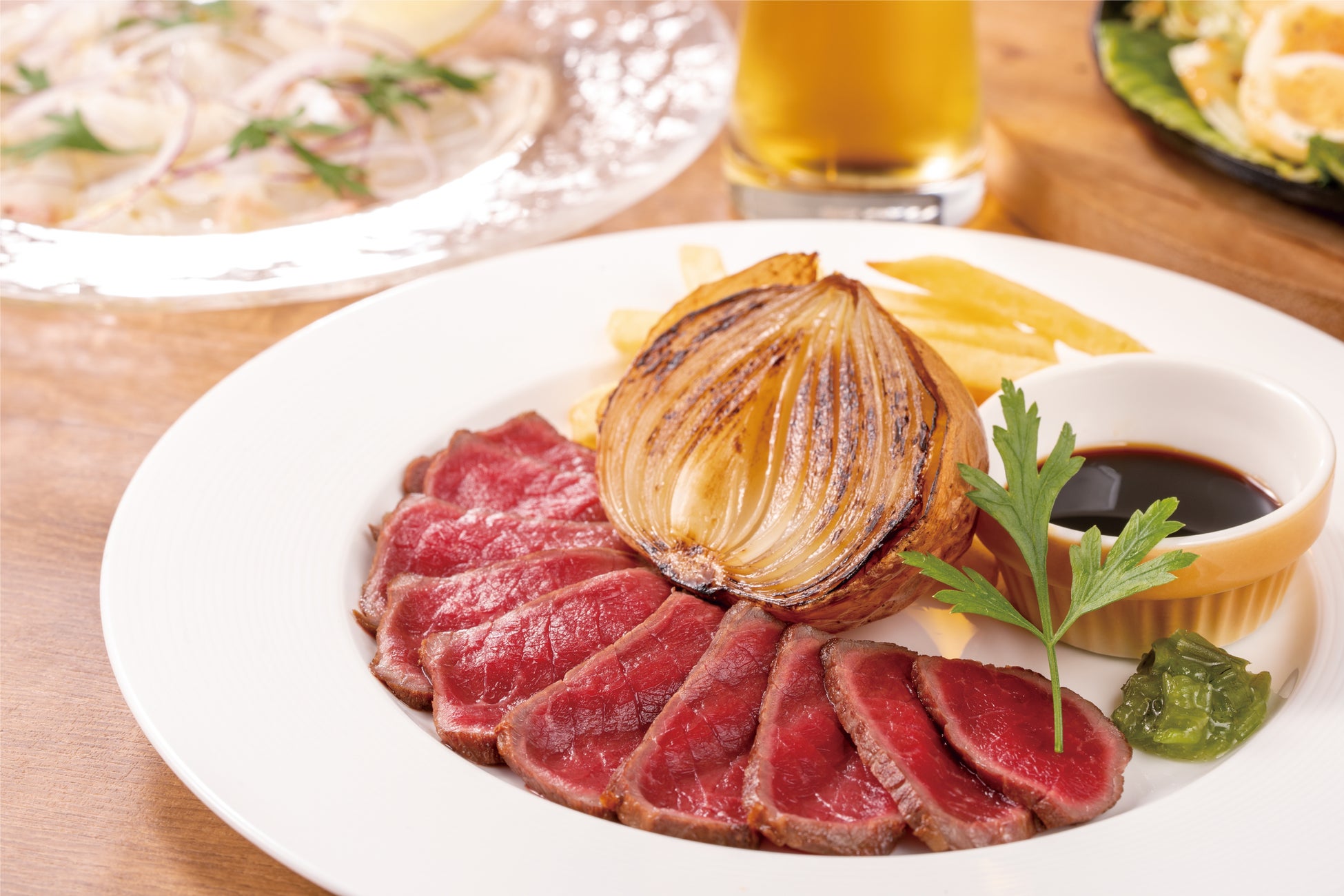 初回の2014年に販売した熊本県の褐毛和種あか牛※を使ったメニュー「あか牛の旨塩焼き」は、同年3月にはグランドメニューの肉料理として通年販売を開始。今年丸10年を迎える、キリンシティの看板メニューのひとつとなっています。