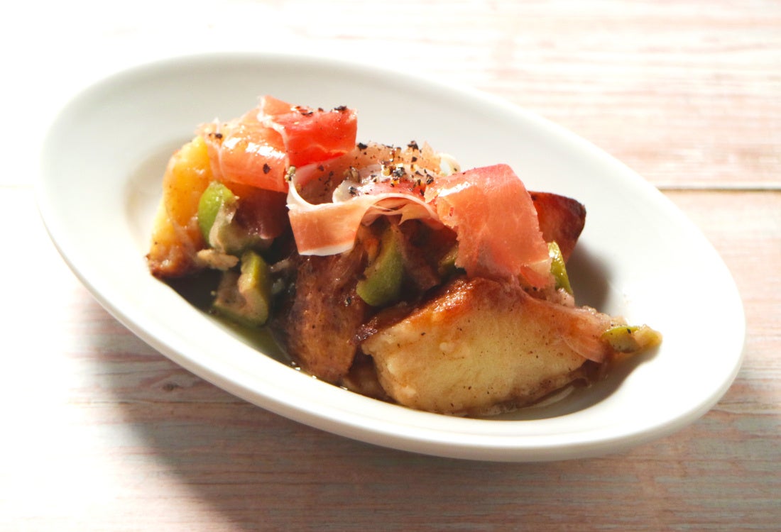 ●新じゃがと生ハム、オリーブのマリネ 650円