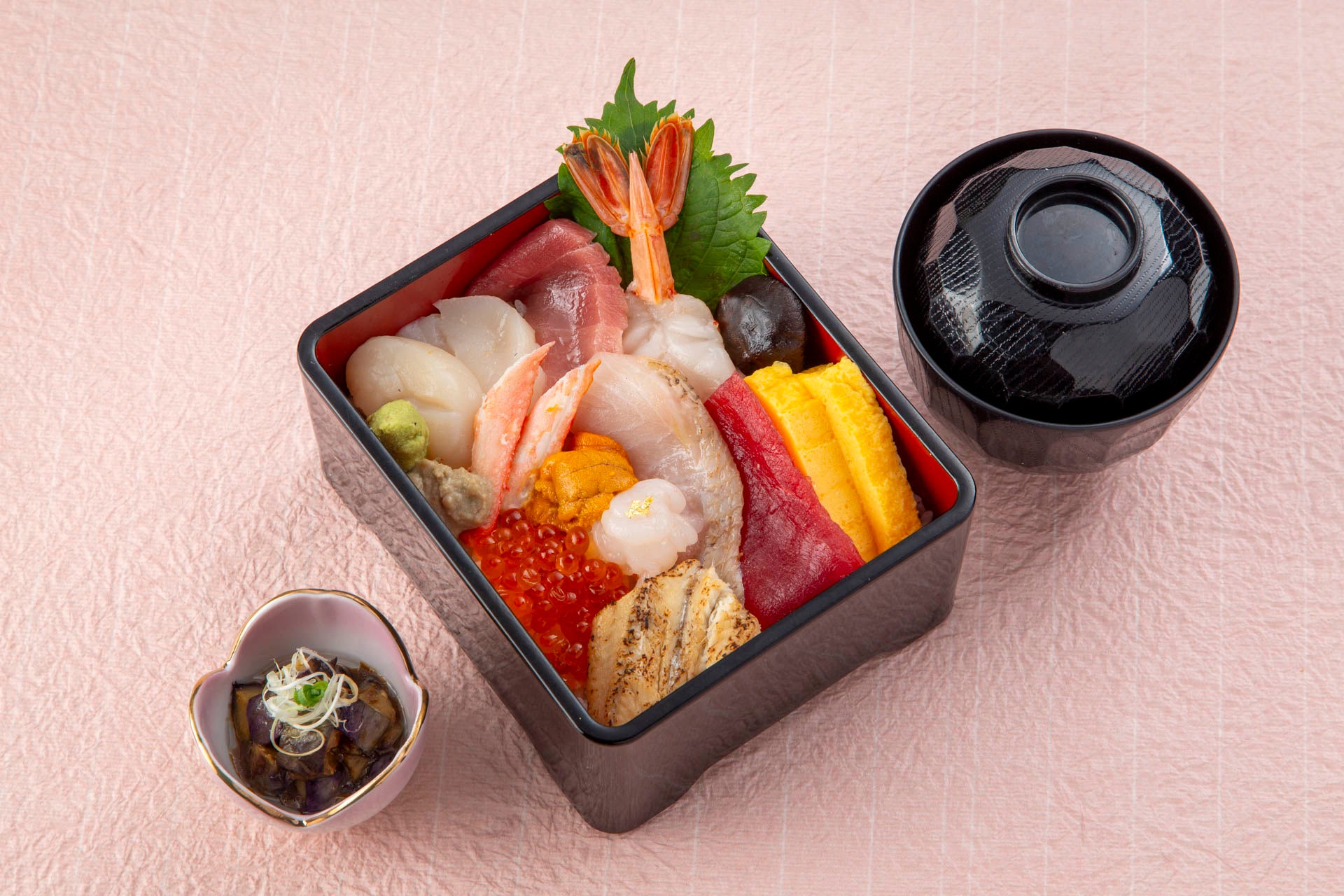(写真上:寿司盛り合わせ 舞紋、写真下:海鮮丼 金澤)