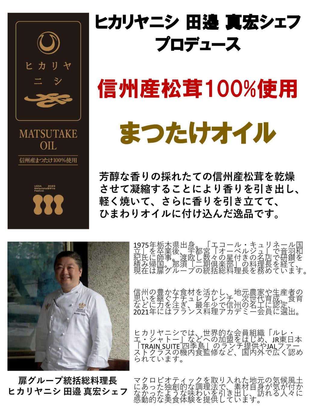 ヒカリヤニシ田邊真宏シェフがプロデュースした「まつたけオイル」