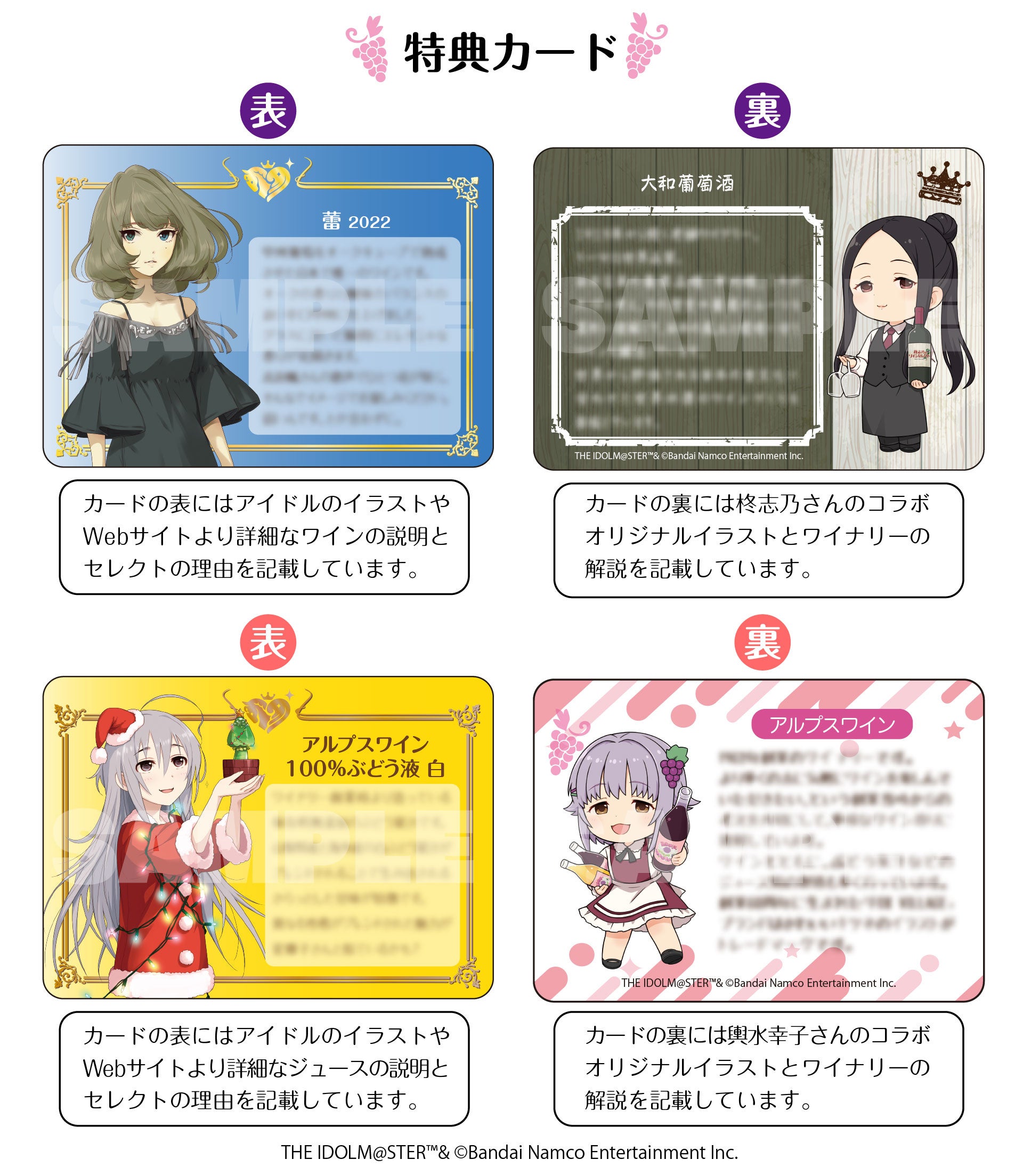 ワインとブドウジュースのそれぞれにオリジナルデザインのボックスと特典カードが付属します。