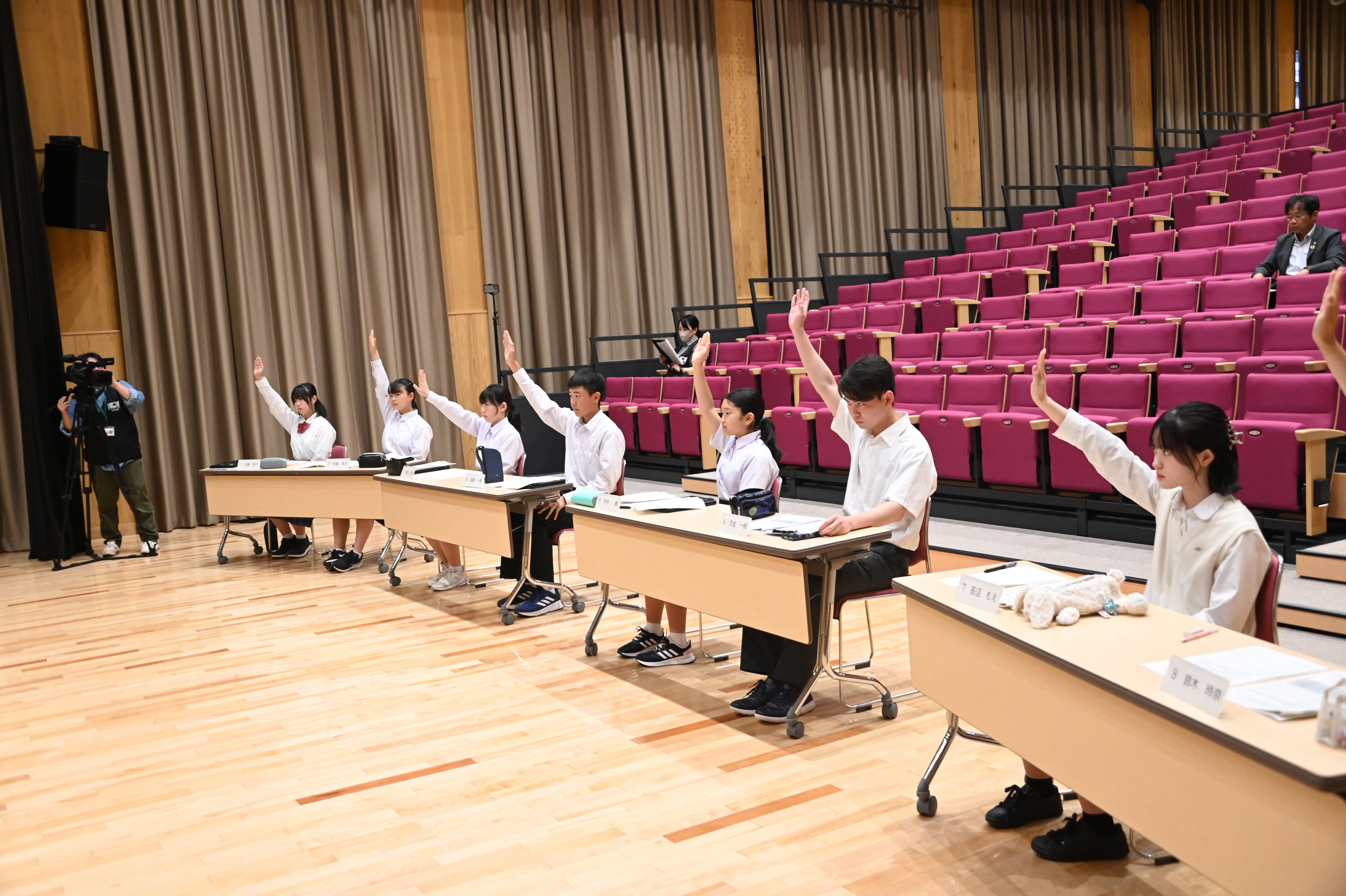 南陽みらい議会は、市の未来を担う中高生が南陽みらい議員となり、実際に50万円の予算を活用して政策実現を目指すというもので、主権者教育の充実を目的に、今年度初めて取り組んだ事業。各校から14人が議員に立候補し、その中から南陽みらい市長として吉田さんが選ばれ、これまで3回の議会と全員協議会の中で議論を重ね、政策案を検討していた。