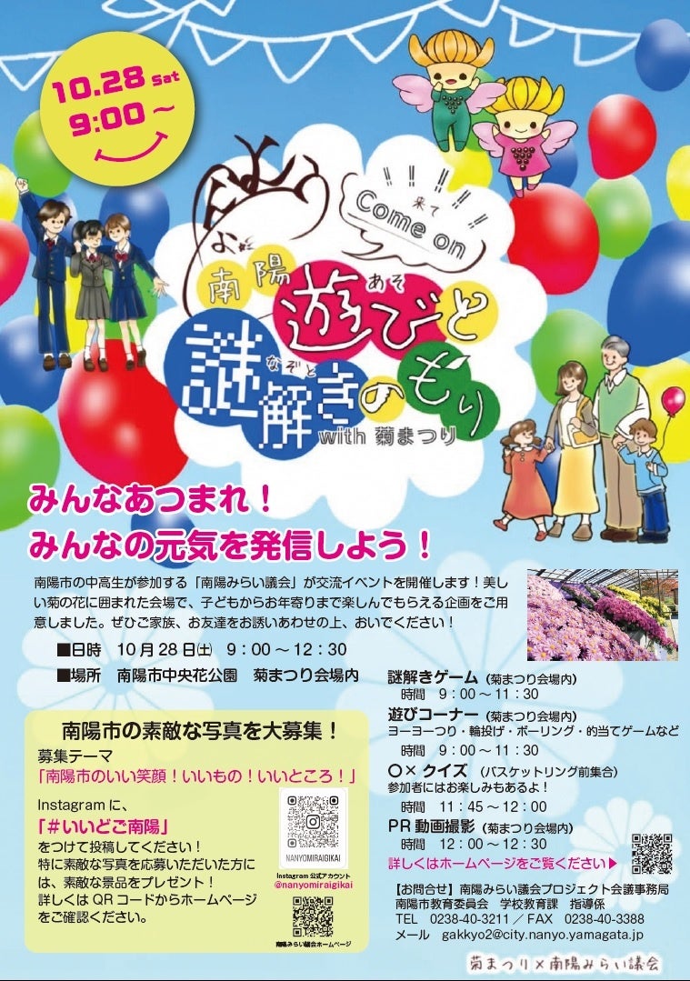 「南陽みらい議会」の中高生が初の事業を企画し、10月28日(土)にイベントを開催
