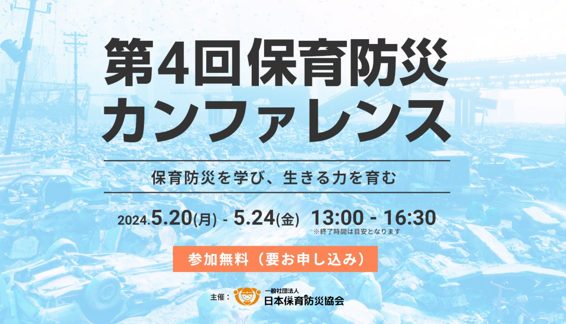 【本日最終日!保育者向けセミナー】第4回保育防災カンファレンス〜保育防災を学び、生きる力を育む〜