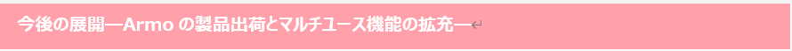 今後の展開―Armoの製品出荷とマルチユース機能の拡充―