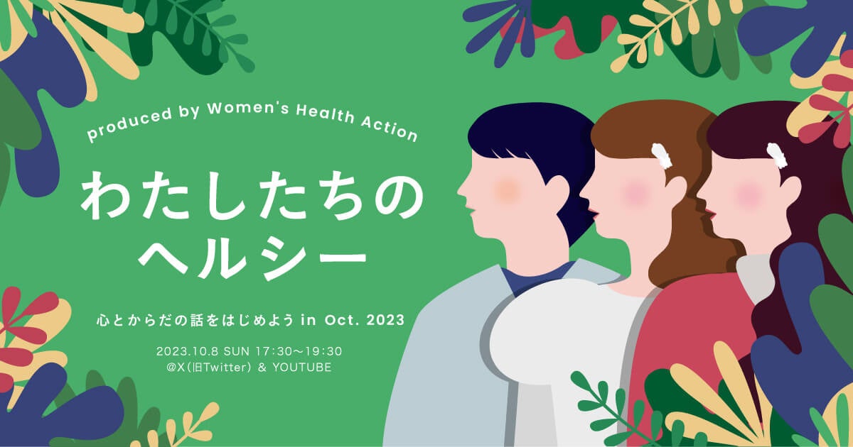 『わたしたちのヘルシー ~心とからだの話をはじめよう in Oct.2023』は、今年度の国際ガールズ・デー(10月11日)とメノポーズ週間(10月18日~24日)にあわせて、10月8日(日)にX(旧Twitter)およびYouTubeにて、オンライン配信でお届けします。女性の心とからだについて、見て、知って、ご自身やまわりの方のヘルスケア意識を高めるきっかけにしていただけるイベントです。