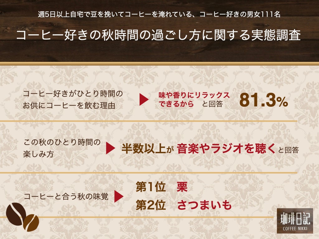 今回は、コーヒー好きの男女111名を対象に、コーヒー好きの秋時間の過ごし方に関する実態調査を実施しました。