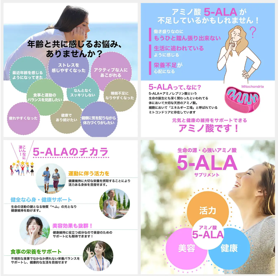 5-ALA 50mg アミノ酸 5-アミノレブリン酸 配合 サプリ サプリメント 60粒 (60日分)4個セット 日本製