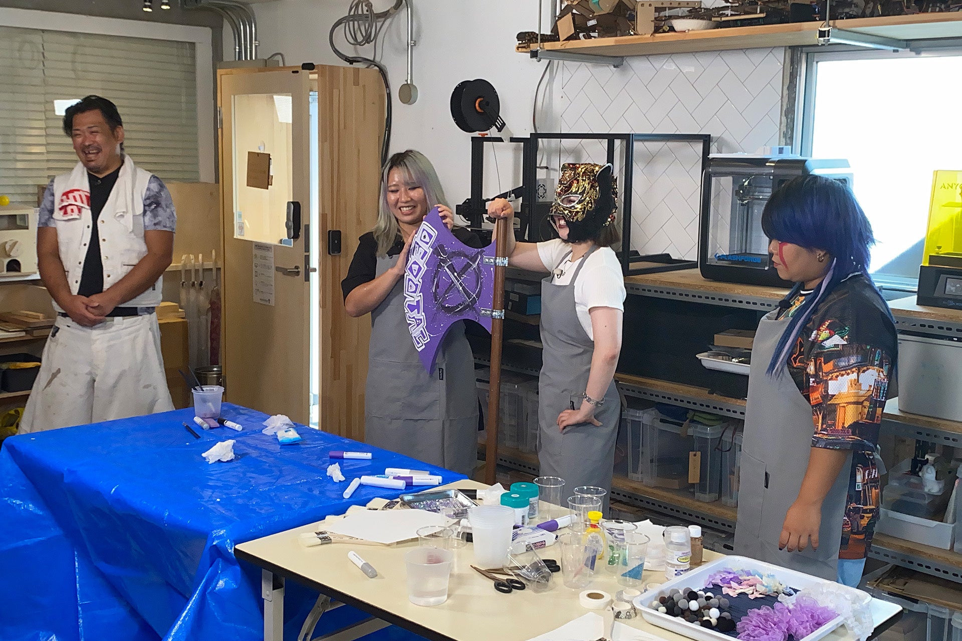 第1回目の配信では、スターダムを代表するグループ【大江戸隊】の「スターライト・キッド選手、刀羅ナツコ選手、渡辺桃選手」の3名がリング内で使用する「新・凶器づくり」に挑戦します。