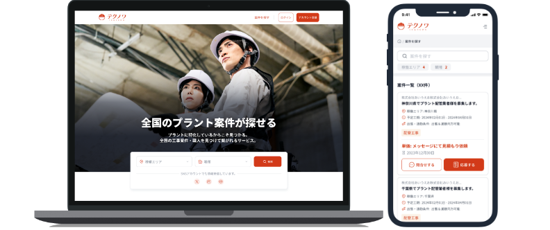 プラント工事会社と職人をつなぐマッチングアプリ「テクノワ」をリリース