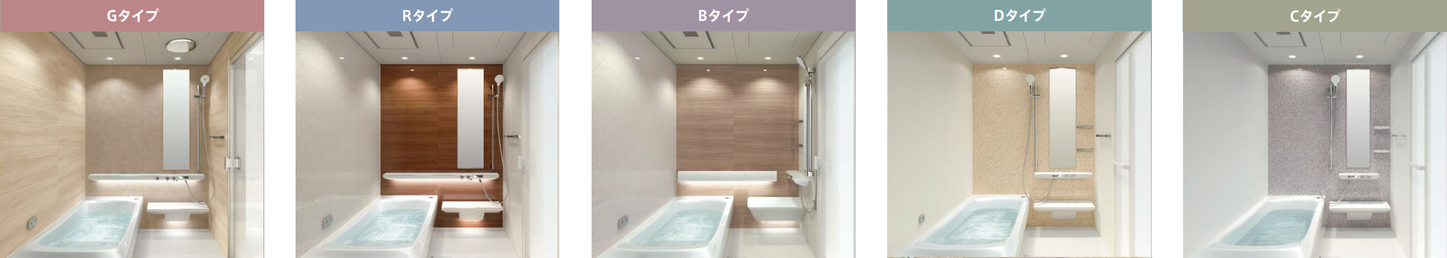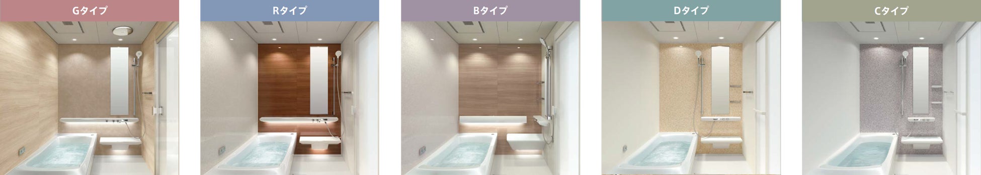 シンラには5つのタイプがありグレードの高い順にGタイプ、Rタイプ、Bタイプ、Dタイプ、Cタイプと揃っています。価格はグレードとオプションにより異なりますがおおよそ1,149,000円~3,091,000円(税抜)の価格帯です。壁柄のカラーバリエーションも43種類(https://jp.toto.com/products/bath/synla/color/)と豊富で様々なカラーコーディネートが実現できます。