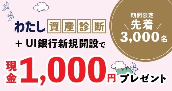 最後に、現在UI銀行では、先着3,000名限定で、「わたし資産診断利用+新規口座開設でもれなく1,000円プレゼント」キャンペーンを実施中です。