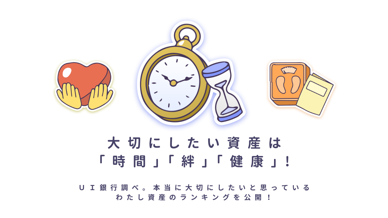 UI銀行調べ!本当に大切にしたいと思っているわたし資産のランキングを公開!あなたが一番大切にしている資産は何ですか!?