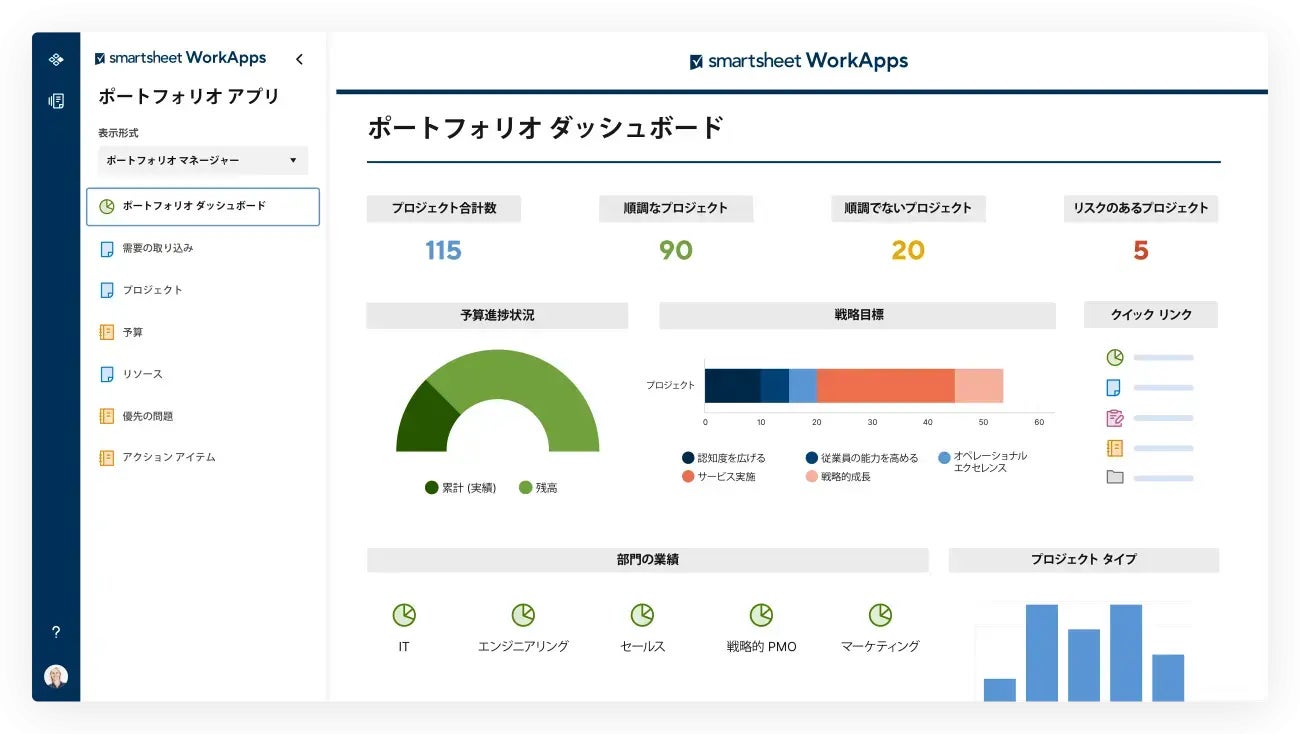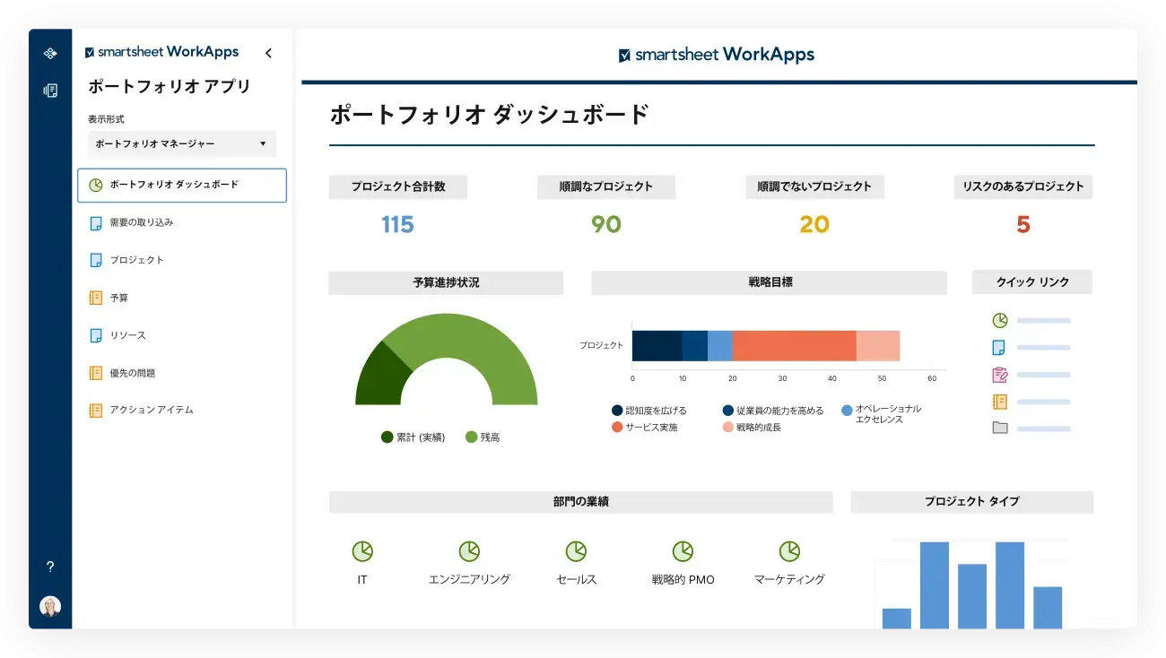 Smartsheet は、フォーチュン 500 に選出された企業の 85% を含む、世界中の何百万人もの利用者に信頼されている最新のエンタープライズ向け業務管理プラットフォームです。Smartsheet はこの分野のパイオニアかつ市場のリーダーで、パフォーマンスを向上させ、次のイノベーションの波を牽引する強力なソリューションを提供しています。詳しくはhttps://jp.smartsheet.com/をご覧ください。