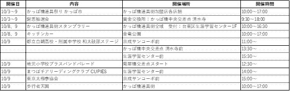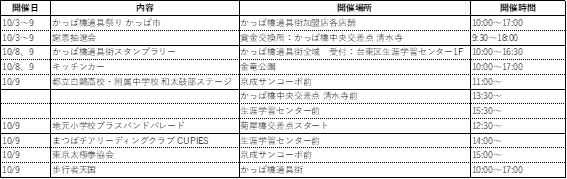 ・主 催 :東京合羽橋商店街振興組合「第38回かっぱ橋道具まつり実行委員会」