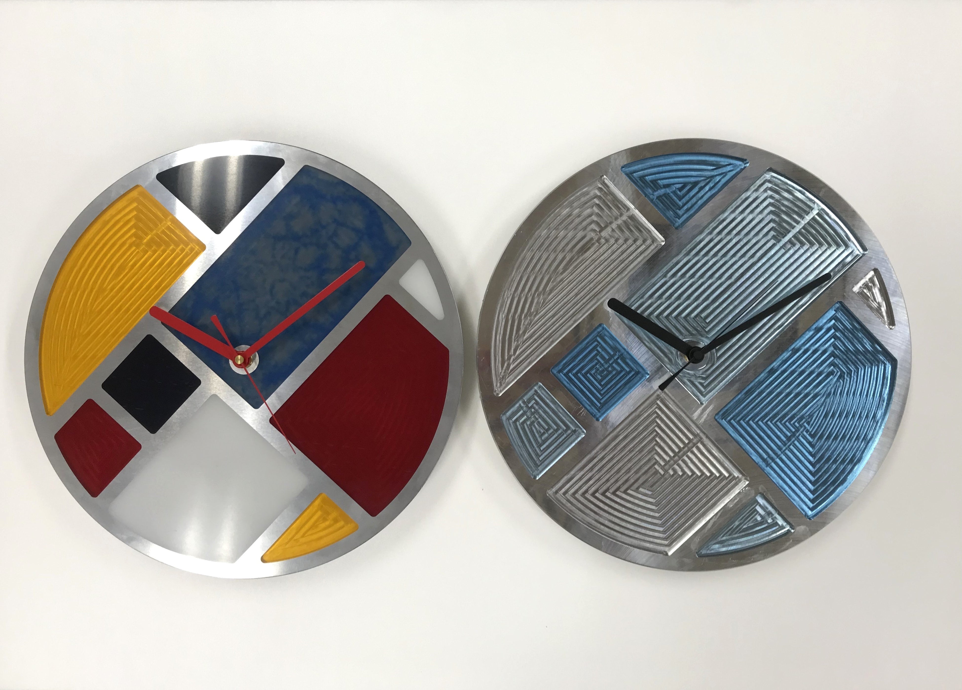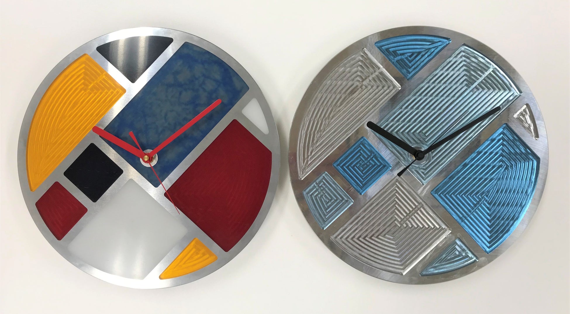 自社の強みは、精度高く、アルミなどの金属を削り出す技術です。その技術に加え、新規性やクリエイティブな感性を取り入れるため、レジンテーブルなどで使用されている樹脂素材・レジンに注目。その2つをかけ合わせたオリジナルデザインの壁掛け時計を開発しました。