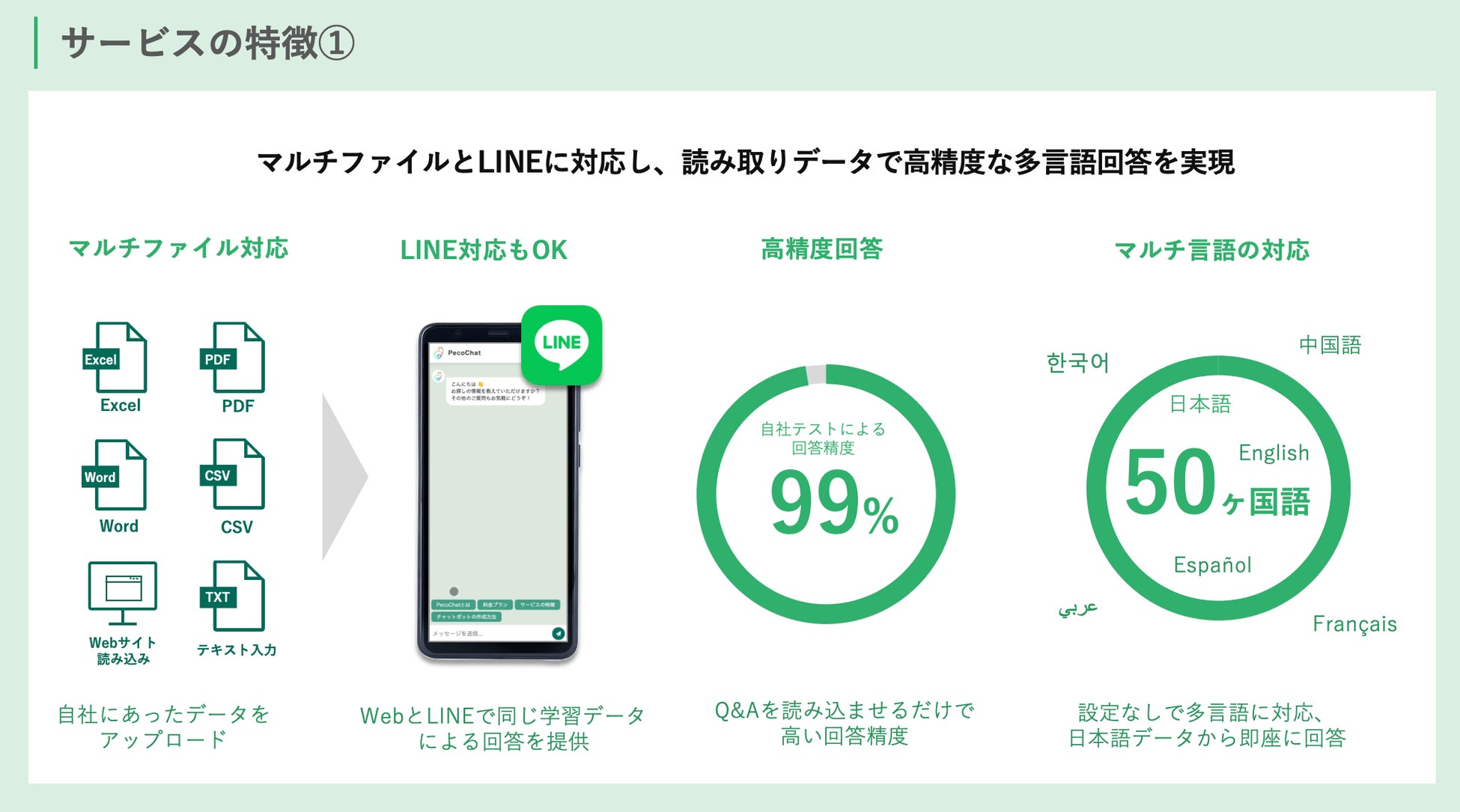 365日24時間の自動返信: 学習した情報に基づいて、ユーザーからの質問に対して常時返信します。