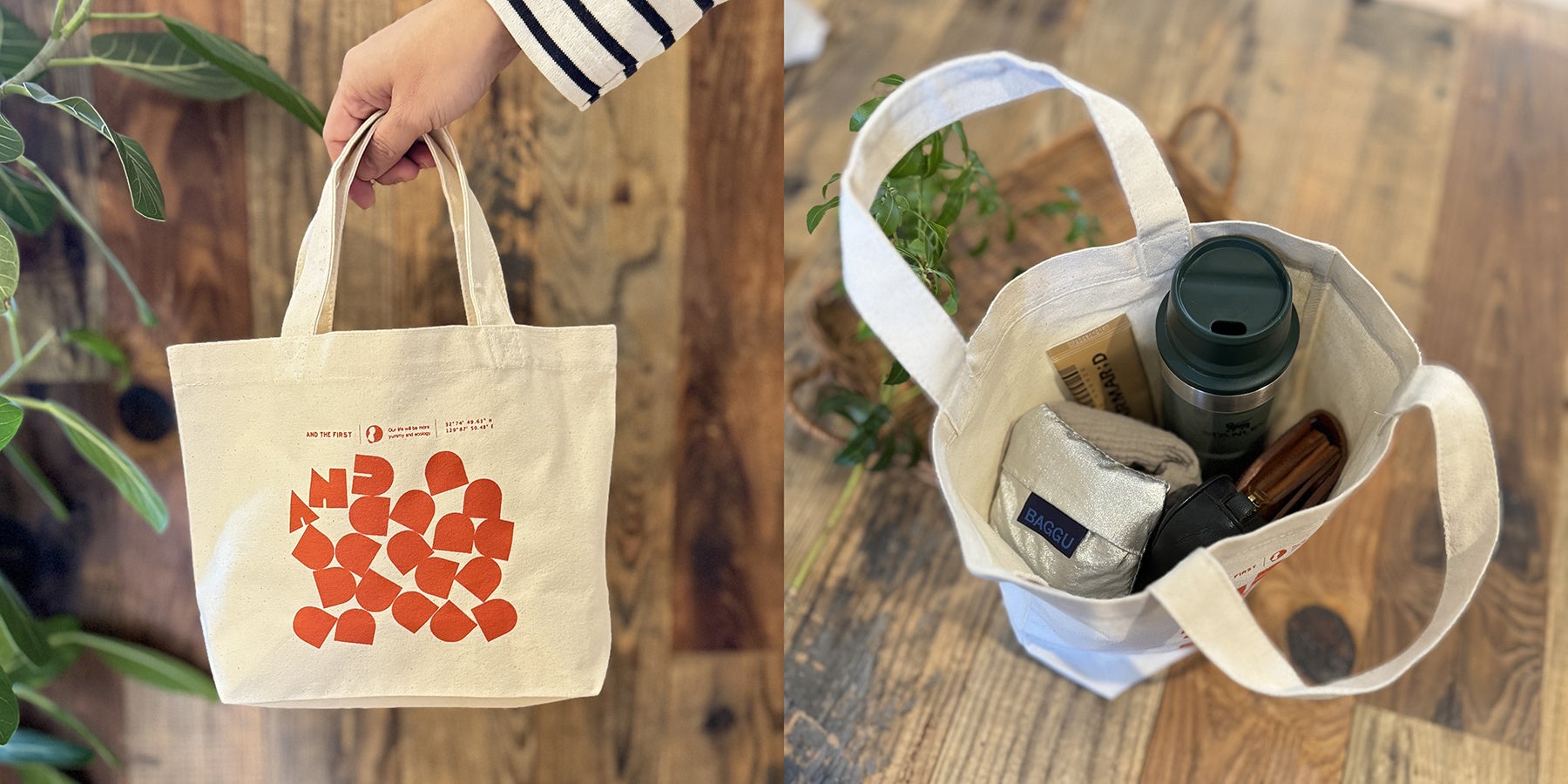 AND THE FIRSTでは、オープン記念キャンペーンとして、先着数量限定で2000円以上お買い上げのお客様にAND THE FIRSTオリジナルトートバックをプレゼントさせていただきます。