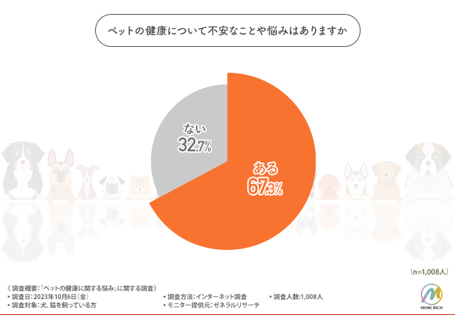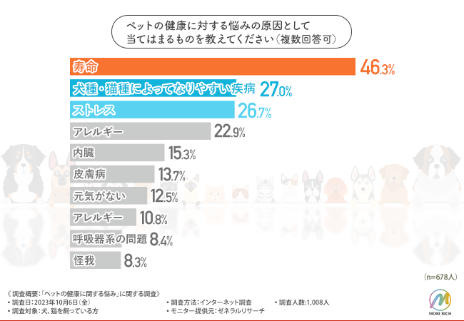 そこで今回、NMNペットサプリ「Good」を販売するモアリッチ株式会社(https://www.morerich.net/good-m)は、全国の犬、猫を飼っている方を対象に「ペットの健康に関する悩み」に関する調査を実施しました。
