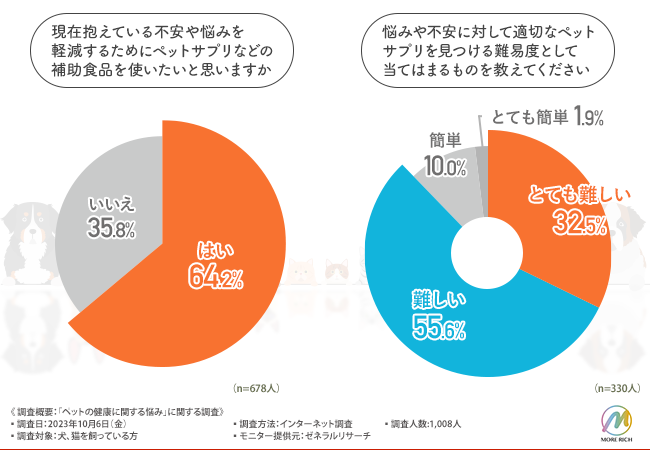 一方で、64%の飼い主が適切なペットサプリの選択が難しいと感じており、ペットサプリの信頼性に対する不安感も見受けられます。