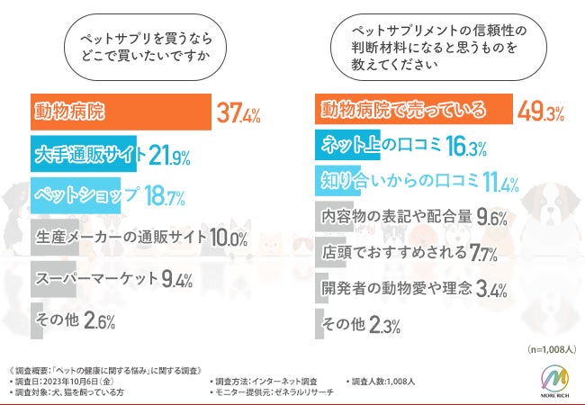 49%がサプリ選びにおける信頼の条件は動物病院で取り扱いがあることと回答