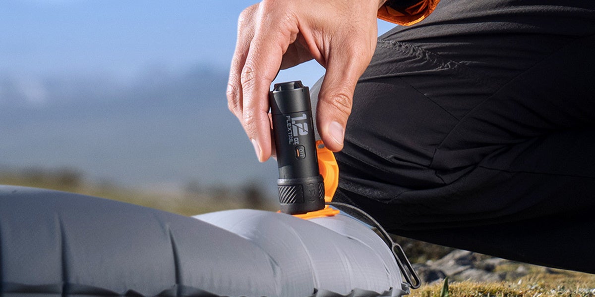 さらに作動音を68dbに抑えることでキャンプやテント泊登山において、場所を選ばず使用することができます。作動時間は約25分(容量650mAhのRCR123Aを使用した場合)で最大25枚のマットを膨らませることが可能なため、ファミリーキャンプや連泊の際にも安心してご使用頂けます。