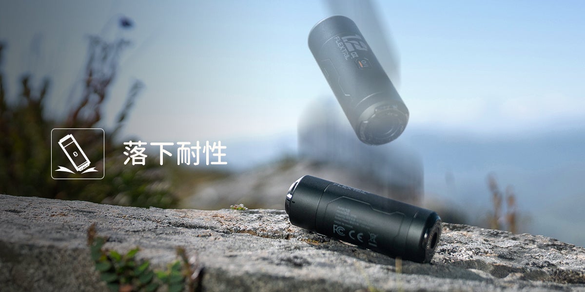 野外での使用を想定し、素材にはアルミニウム合金を使用しています。落下の衝撃や擦れにも強く1mの高さから落としても正常に作動します。アルミニウム合金を使用することで、メタリックで洗練されたデザインになっています。