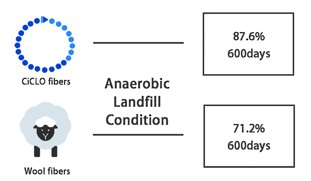 CiCLO技術を使用した生分解性ポリエステルは、ウールよりも高い生分解があり、
