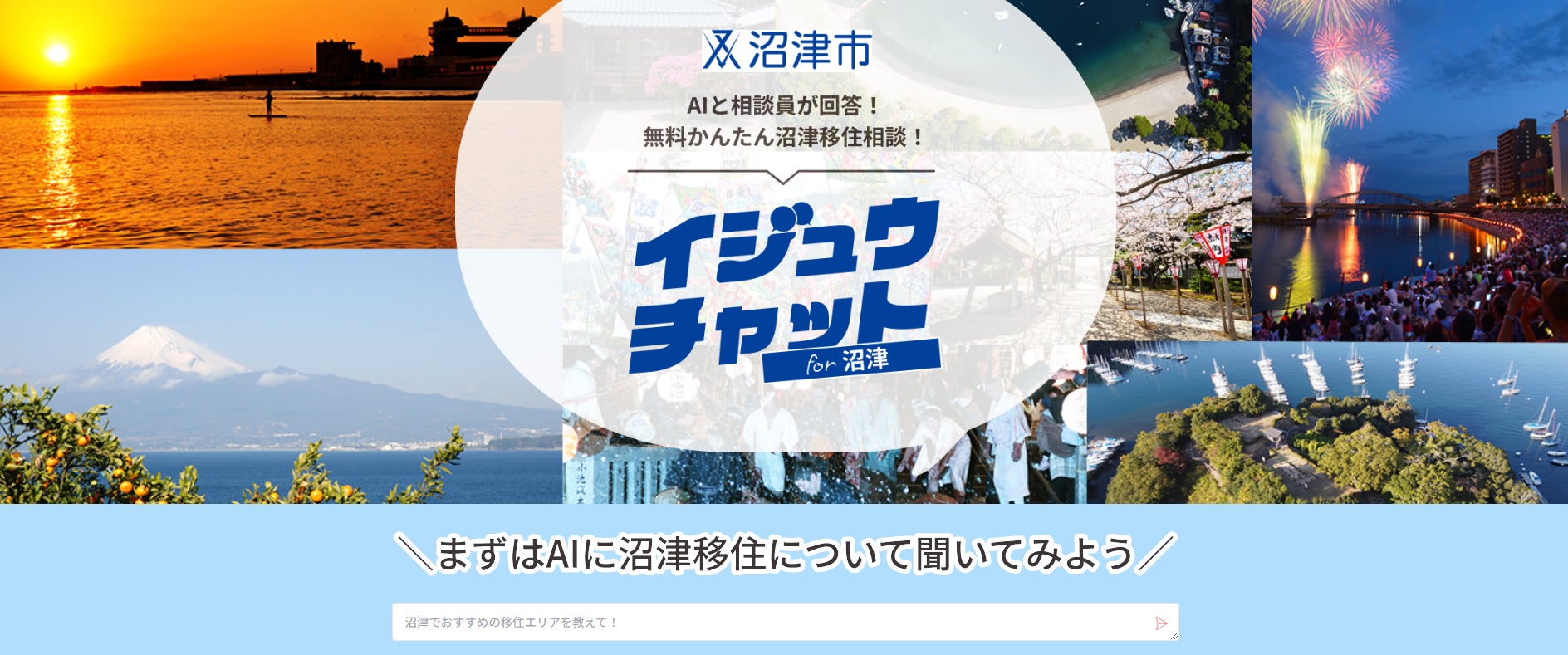 沼津に詳しい相談員とAIがハイブリッドで移住相談に答える「イジュウチャット for 沼津」の提供を開始